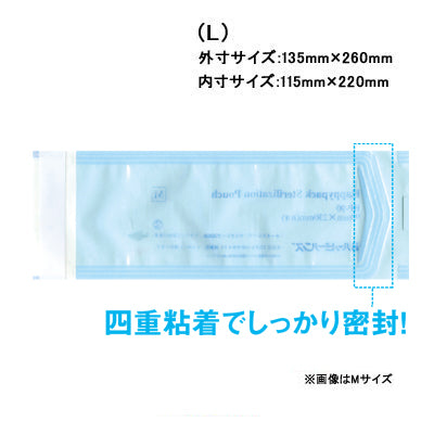 - シールタイプの滅菌用パウチ イギリス・BILLERUD社のペーパーを使用 ヒートシーラー不要で手軽に使用できます オートクレーブ・ケミクレーブ・E.O.G滅菌に対応のインジケーター付き 片面フィルムタイプで内容物が、またインジケーターで滅菌完了が一目で分かります ■ サイズ:(外寸)135mm×260mm ■ サイズ:(内寸)115mm×220mm ■ 入数:200枚 ■ 中国製 サイズ違いも取扱あります