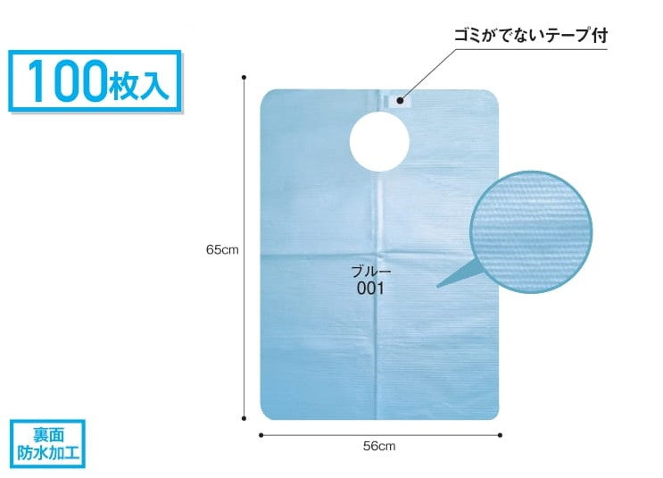 - エンボス加工を施したロングタイプの紙エプロン 首回りに両面テープがついており、ワンタッチで装着できます ■ 両面テープで留めるタイプ ■ エンボス紙製、1層 ■ 裏面防水加工(ポリコーティング) ■ サイズ:縦65cm×横56cm ■ 入数:100枚/箱 ■ 中国製 ※ロットにより、若干色が異なる場合がございます