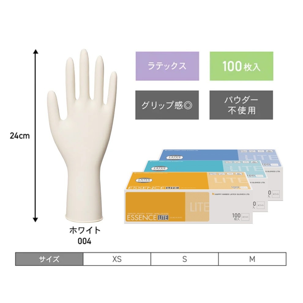 - 優れたグリップ感。薄くても丈夫。サイズごとのパッケージカラーで管理が楽!