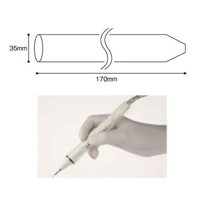 - **感染予防対策商品** スケーラー、シリンジのカバーにお使いいただけます 先端にノズル・ペン先用の穴が開いています ■ サイズ:35×170mm ■ 枚数:500枚/箱 ■ 色:透明 ■ 中国製