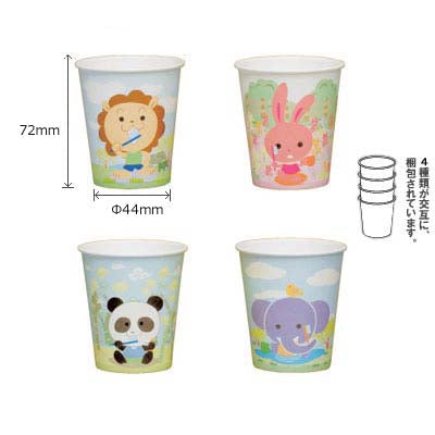 - 動物がモチーフのかわいい4種のアソートペーパーカップ 従来品よりカップの高さを1mm小さくし、ケースをよりコンパクトに ※当社のカップはコンパクトなため、他社製のキャップやディスペンサー等に適応しない可能性がございます ※うがい薬等のご利用で漏れが発生する場合がございます。 ■ サイズ:5オンス(150cc) ■ 材質:190g紙を使用 ■ 高さ:72mm 上Ф65mm 下Ф44mm ■ 入数:3000個/ケース ■ 中国製