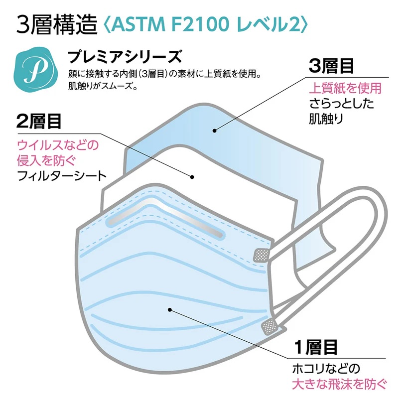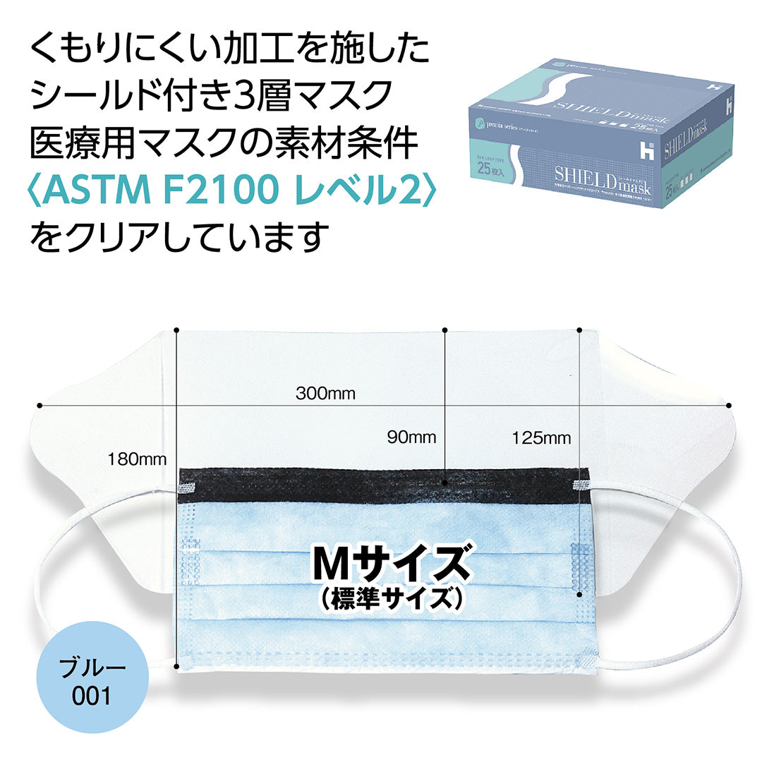 - ☆プレミアシリーズ☆医療用マスクの素材条件(ASTM F2100 レベル2をクリア) くもりにくい加工を施したシールド付き3層式マスク。 内側にはズレや眼鏡の曇りを防ぐスポンジ付き。 外側には脱臭効果のある炭シート付き。 ■ 平ゴムタイプ(ノンラテックス) ■ 鼻の形に合わせられるアルミ製ノーズピース付 ■ BFE細菌:細菌ろ過効率≧98%(3.0μm) ■ PFE細菌:微粒子ろ過効率≧98%(0.10μm) ■ サイズ:90mm×175mm(シールド125mm×300mm) ※10箱/ケースです ※ロットにより、若干色が異なる場合がございます