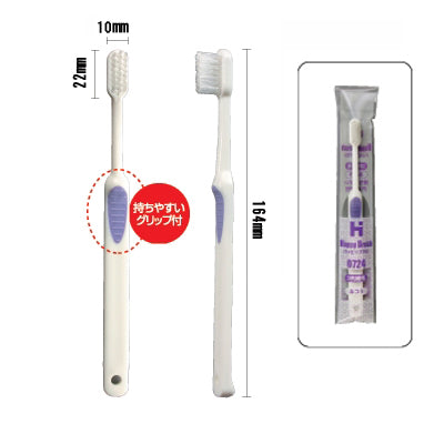 - 持ちやすいグリップ付歯ブラシ 毛先はフラットタイプ 毛先が平らなのできちんと先端を歯に当てて磨くことができます ■ 1本ずつ個別包装になっています ■ デュポン社製ナイロン使用 ■ 穴数:22穴(3列植毛) ■ 毛の硬さ:ふつう ■ 毛先:フラットタイプ ■ 入数:100本/袋 ■ グリップ部:パープル ■ 中国製 ※カラー違いの「ピンク」も取扱ございます