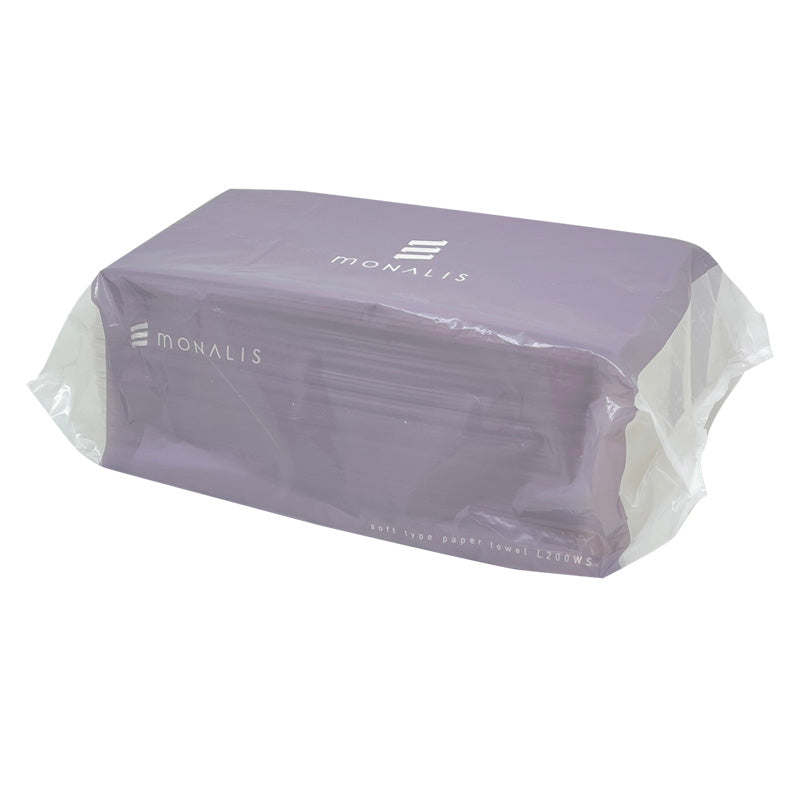 - 使用感を高めた紙タオル、高品質ブランド『モナリス』 牛乳パック類から取れる良質なパルプ繊維を配合し、ソフトでしなやかな風合い 吸水性に優れ、肌触りも抜群です ■ 2枚重ねのソフトタイプ ■ 牛乳パック再生紙 ■ サイズ:220mm×230mm ■ 入数:200組(400枚) ■ 日本製 ※30パック/ケースになります *お申込み番号:025849「ペーパータオルケース」に対応しています