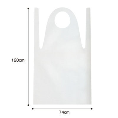 - ポリエチレン製エプロン、腰紐が長く結びやすい エンボス加工を施しているので、使用者の衣服へのまとわりつきを軽減します ■ 素材:ポリエチレン ■ サイズ:縦120cm×横74cm ■ 紐長さ:約95cm ■ 色:半透明 ■ 入数:50枚/袋