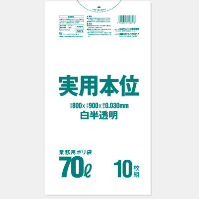 業務用実用本位 ゴミ袋 70L(白半透明)