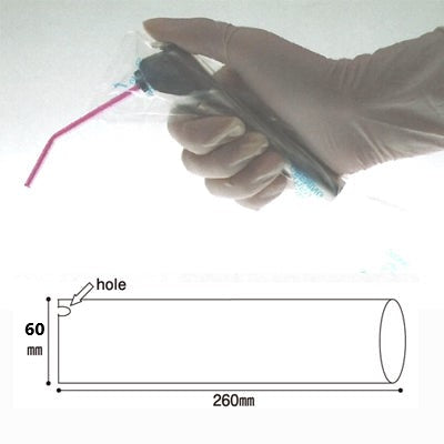 **感染予防対策商品** シリンジのカバーにお使いいただけます ■ サイズ:60mm×260mm ノズルが出しやすいホール付き ■ 枚数:500枚/箱 ■ 色:透明 ■ 中国製