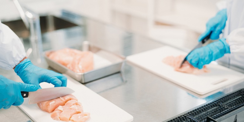 これらの食品を取り扱う際にニトリル手袋を着用することで、食品から手指への汚染を防ぎ、他の食品や調理器具への二次汚染を防止します。