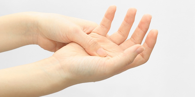 手をまっすぐ広げた状態で、利き手の手のひらの一番広い部分(親指の付け根の少し下から小指の付け根あたり)を測ります。メジャーや定規を使用し、幅をセンチメートル(cm)単位で記録してください。