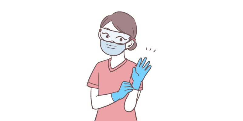 使い捨て手袋は衛生的に作業を行うために使用するアイテムです。使い捨て手袋そのものが汚染されないように管理するほか、使い捨て手袋を装着した状態で汚染物質を触ることのないように注意しましょう。